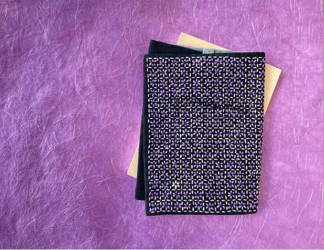 すみれ色の花をぎっしり詰め込みました。 織物のように見えますがひと針ひと針手作業で刺し子しています。 技法の基盤を守りつつ、庄内刺し子の伝統模様「米刺し」を花柄にアレンジしたもの。 日本の民芸品を楽しんで欲しくて和雑貨らしくないデザインにしています。 画像のように背表紙側の布を帯の中に折りこんで本の厚みに合わせカバーをフィットさせることができます。 A6サイズのリングノートや手帳カバーにもご利用可能。 無料ラッピングにてお届け致します。 ::::::::::::::::::::::::::::::::::::::::::::::::::::::::::::::::::::::::::: 麻、綿 約32×16cm (ヨコ×タテ) ※ヨコは文庫本の表・背・裏表紙の折り返し部分を合わせたおおよそのサイズです。 厳密には若干の誤差がございますが、それも一期一会の個性としてお楽しみください。 ・お洗濯は手洗い、陰干しを。 ・乾燥機はお避けください。 ::::::::::::::::::::::::::::::::::::::::::::::::::::::::::::::::::::::::::: 品番:385