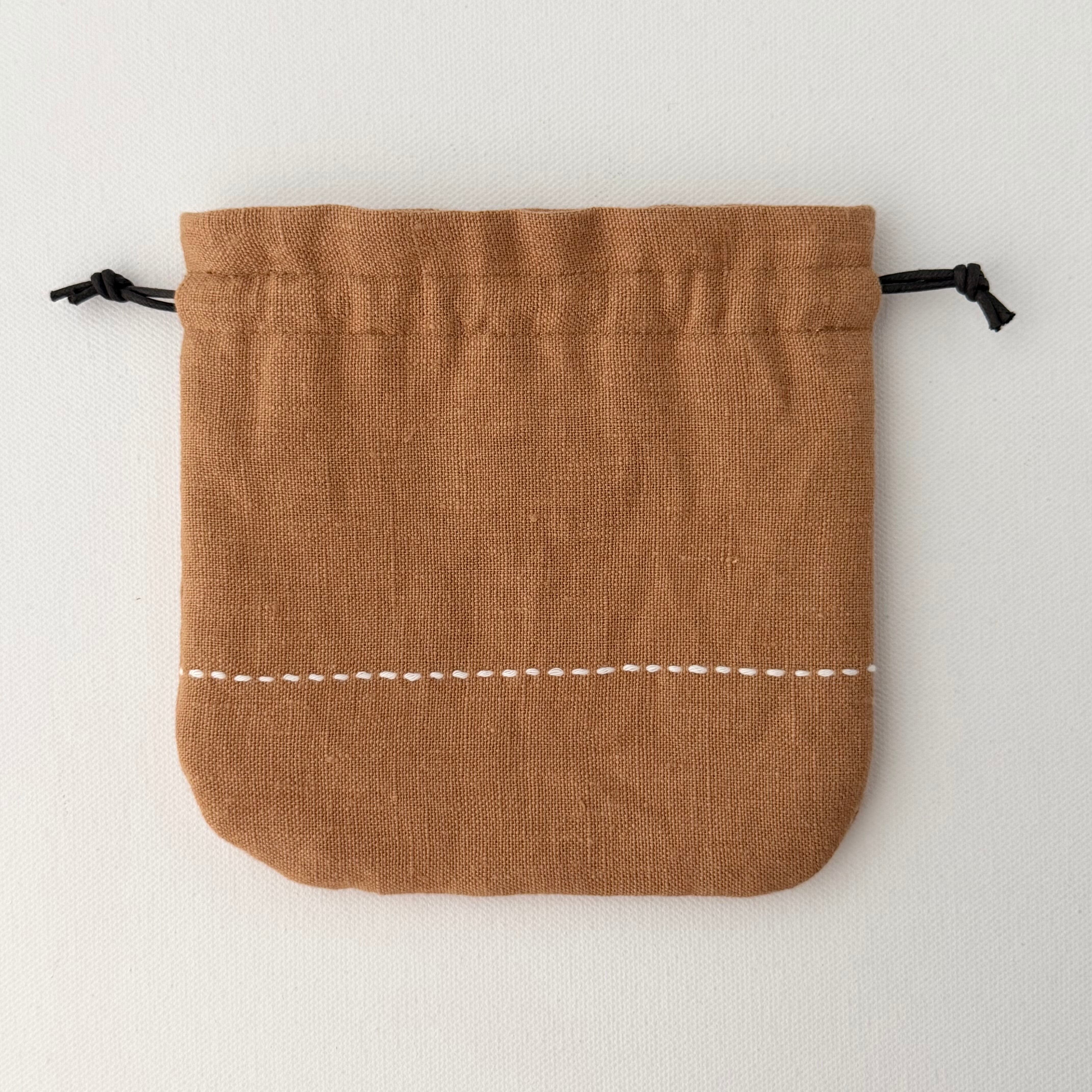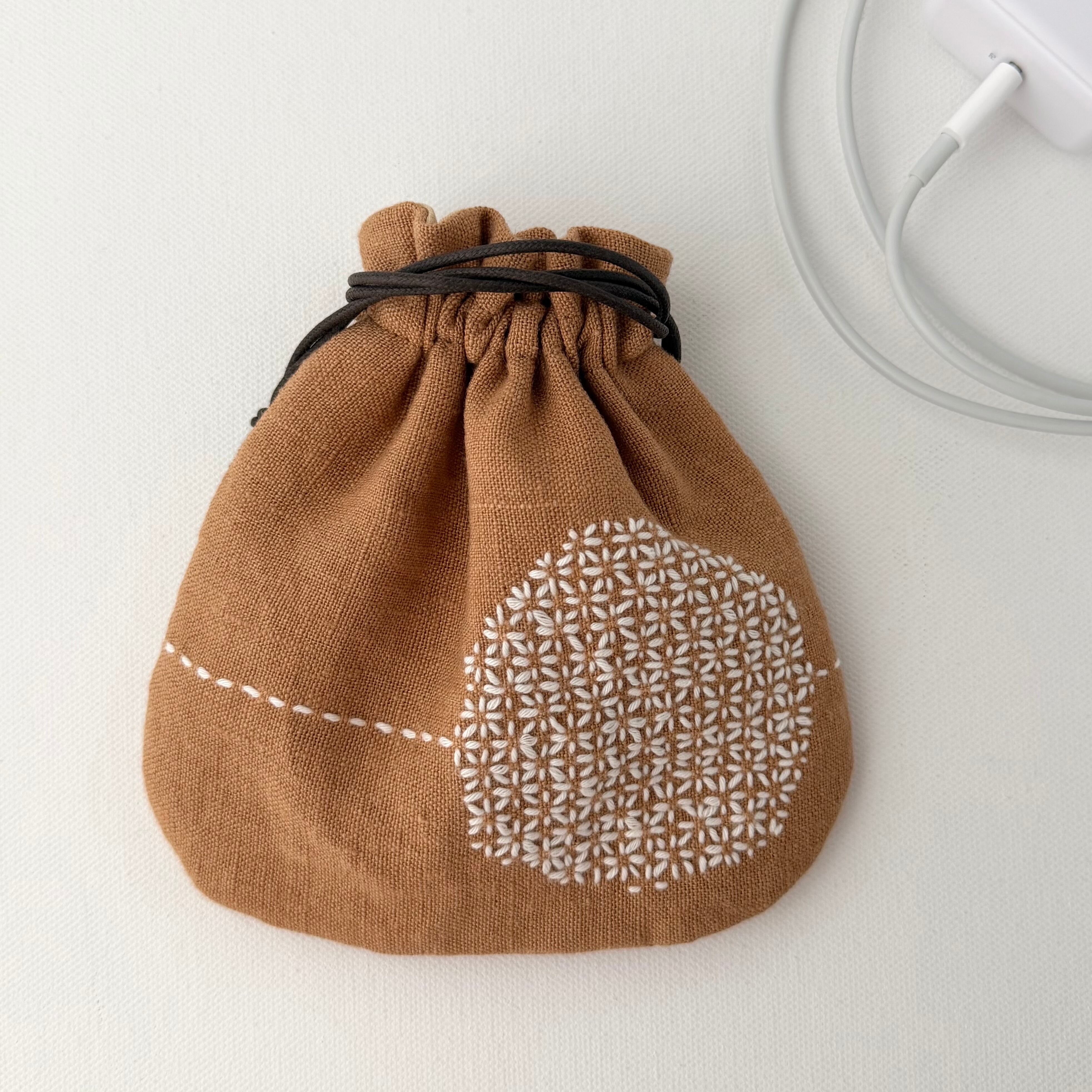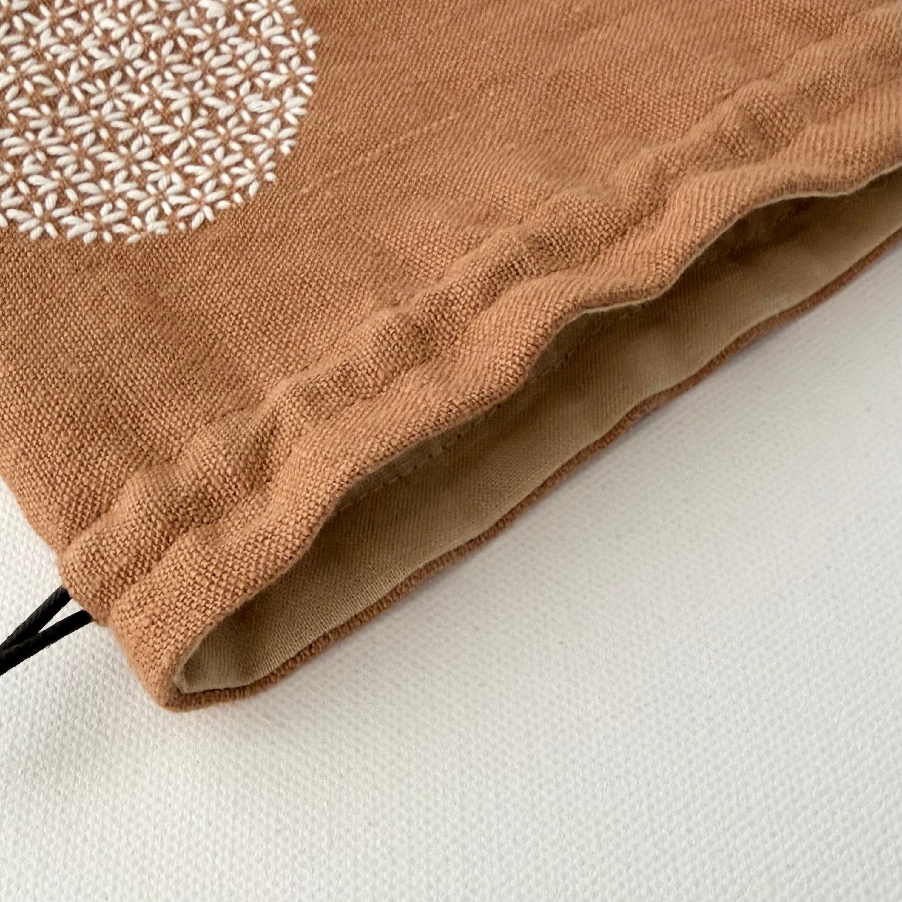 柿渋染めの刺し子巾着