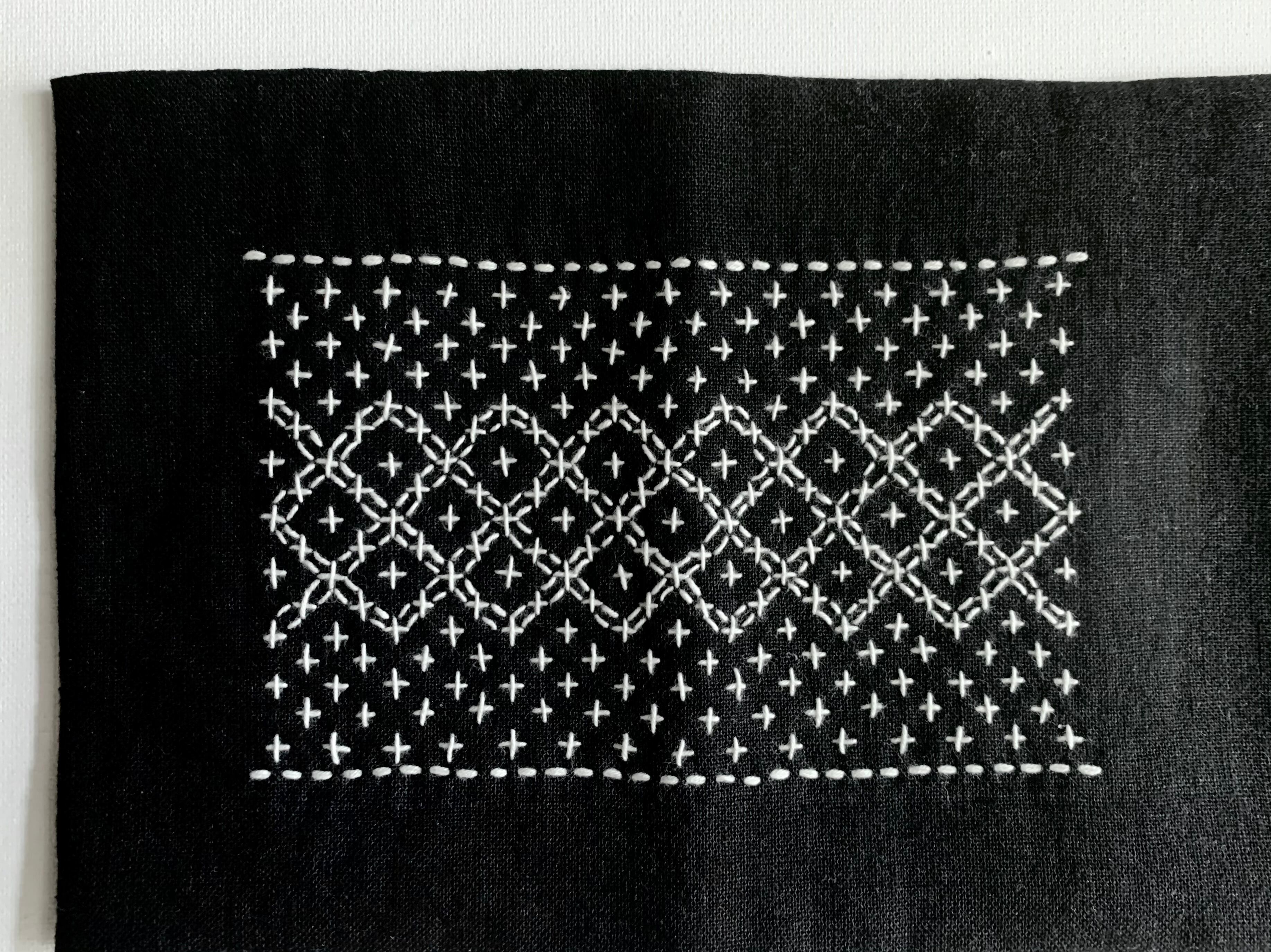 刺し子の花十字(はなじゅうじ)模様をアレンジし