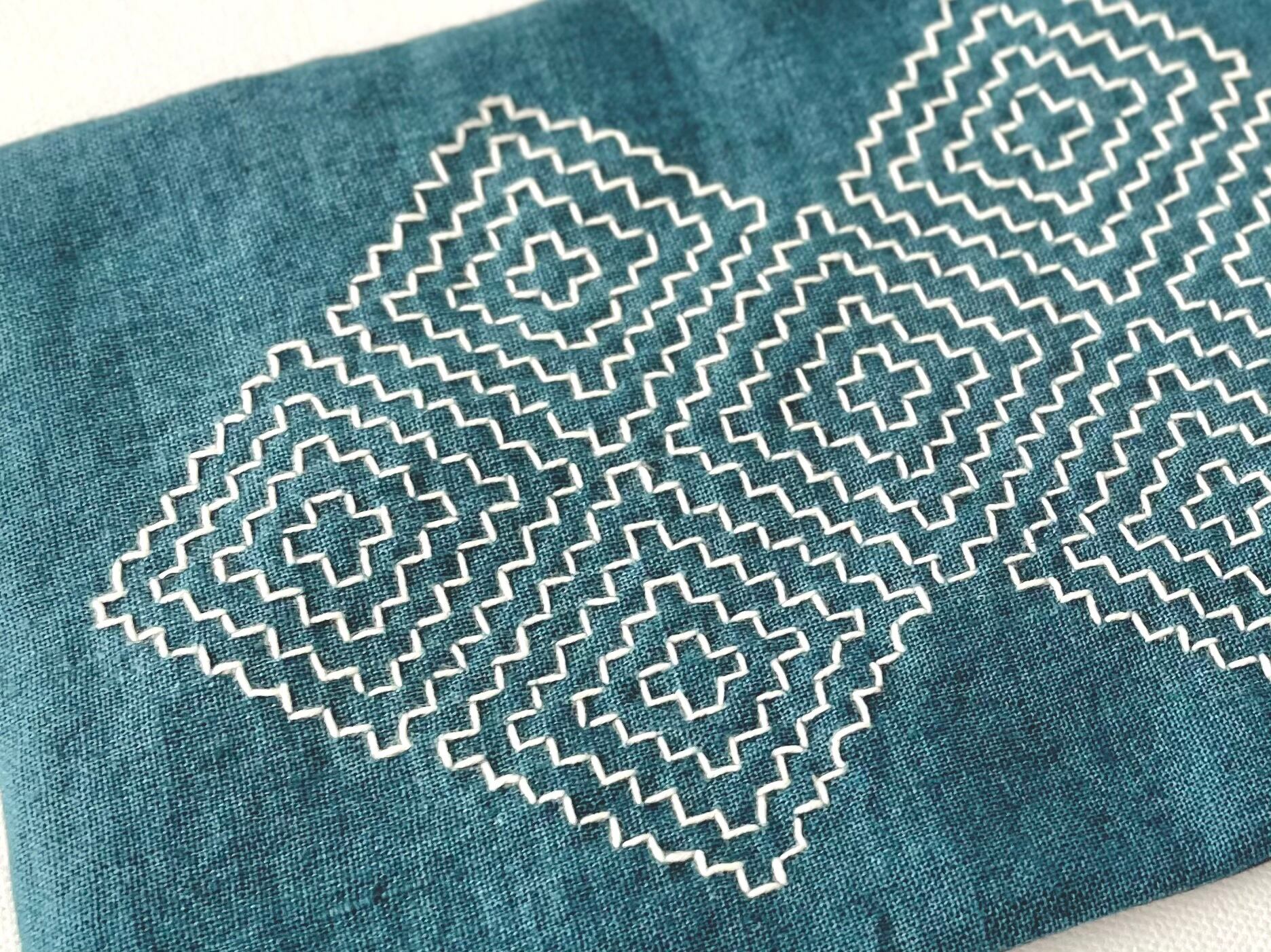 ひと針ひと針丁寧に刺し子しています。